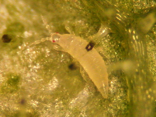ミナミキイロアザミウマ1齢幼虫(体長0.6mm)