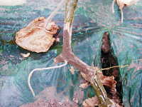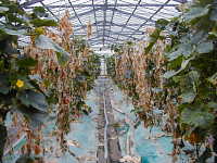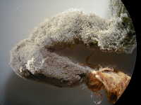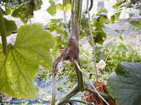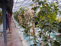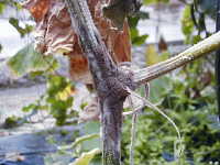 | 発生時期:ハウスでは周年 病原:糸状菌(かび) 伝染方法:ほ場に残った発病は・発病果上の病原菌や、地表面に菌核として残った病原菌が、伝染源となる。次期作では、そこから胞子を飛散して伝染する。 被害・果実、茎、葉に灰色のかびを密生した病斑を生じる。 |