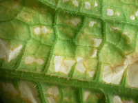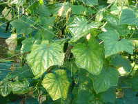欠乏症状:マグネシウムは生体内で再移動しやすい要素のため、通常下位葉から葉脈間黄化が現れる。その後、黄化はクロロシス(白化)や壊死に進む。