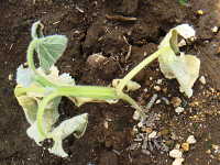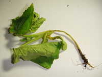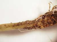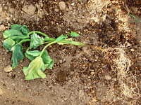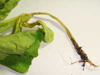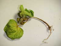 被害:地際部が細くなって軟化し、苗が倒伏して枯れる。