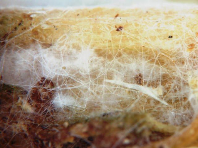 苗立枯病 ピシウム菌の白色綿毛状の菌そう
