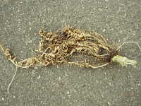 被害:根の組織がふくれてコブ状になり、細根がなくなり、株が萎凋・枯死する。