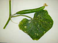 | 発生時期:キュウリ生育期間中 被害:果実の傷、葉の奇形、芯止まり |