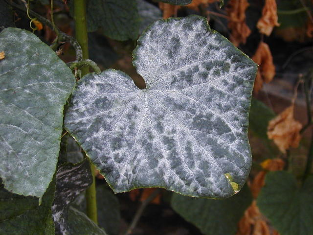 うどんこ病 発病後期葉(葉脈に沿った病斑)