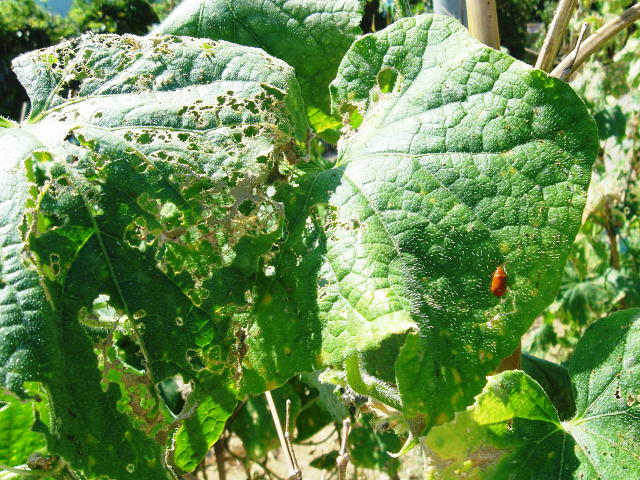 ウリハムシ成虫による葉の食害