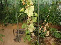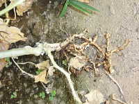 被害:根の組織がふくれてコブ状となり、細根がなくなり、株が萎凋・枯死する。