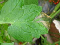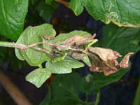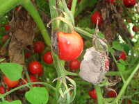 被害:果実、茎、葉に灰色かびを密生した病斑を生ずる。