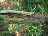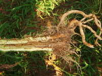 伝染方法:病原菌は、被害組織とともに土壌中に残り、伝染源となる。
