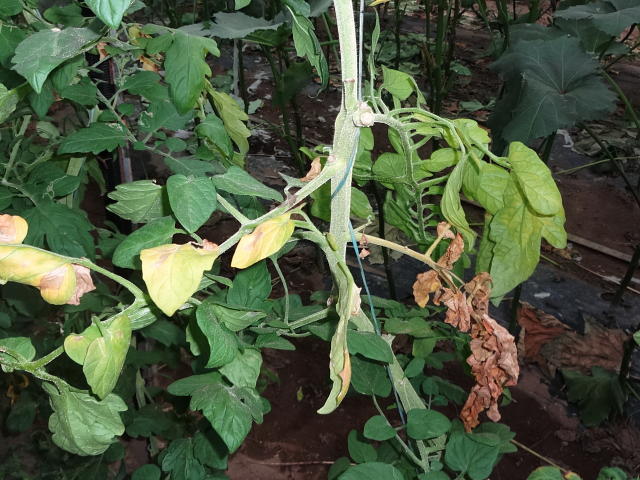 半身萎凋病 片側の複葉が黄化・枯死