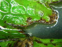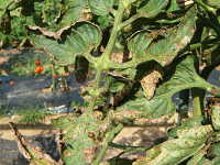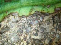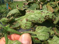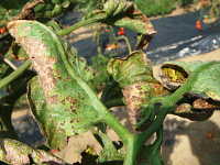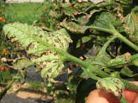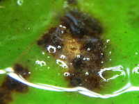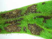 被害:葉や茎に小黒斑を生じ、病斑が拡大すると葉が枯れる。