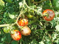 被害:薄褐色の病斑を生じ、次第に黒色ビロード状のかびを生じる。