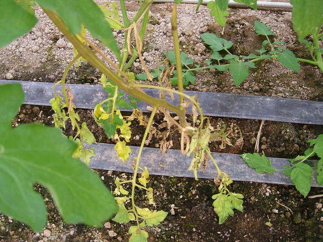 トマトサビダニ 株の生育が不良で下葉が黄化
