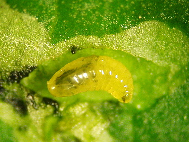 トマトハモグリバエ幼虫(体長2mm)