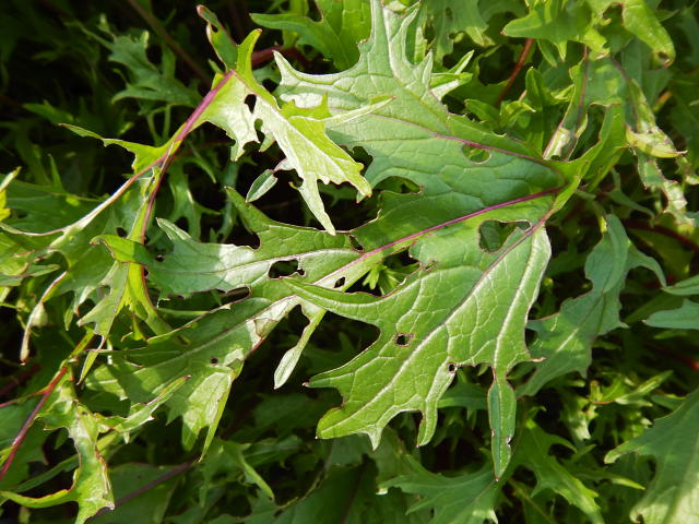 コメント:ダイコンサルハムシ成虫による食害葉