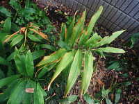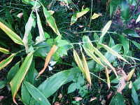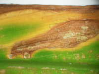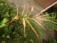 葉縁の黄褐色部が拡大 |
