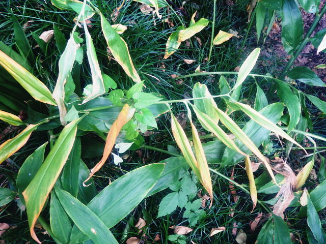 葉枯病 葉縁の黄褐色部が拡大