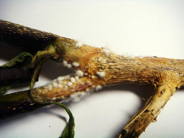 菌核病 病斑部に白色綿毛状のかびを生じる