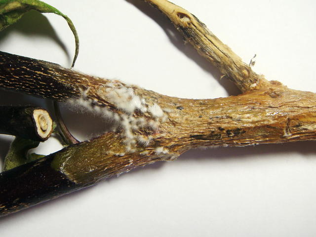 菌核病 病斑部に綿毛状のかびを生じる