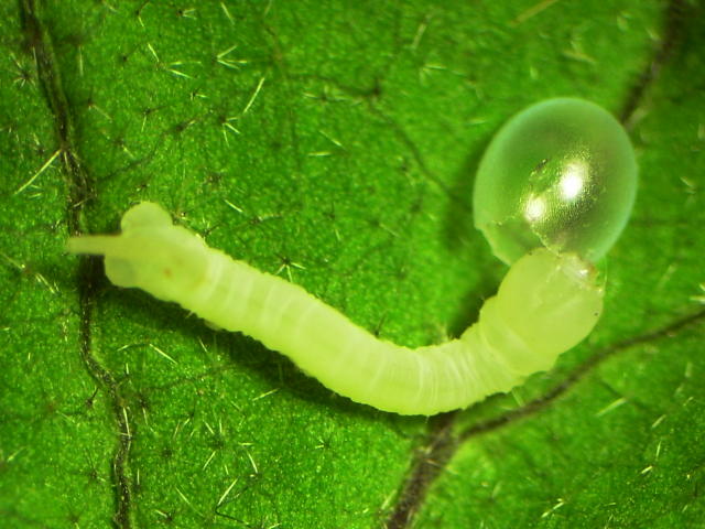 クロメンガタスズメ孵化直後幼虫(体長5mm)