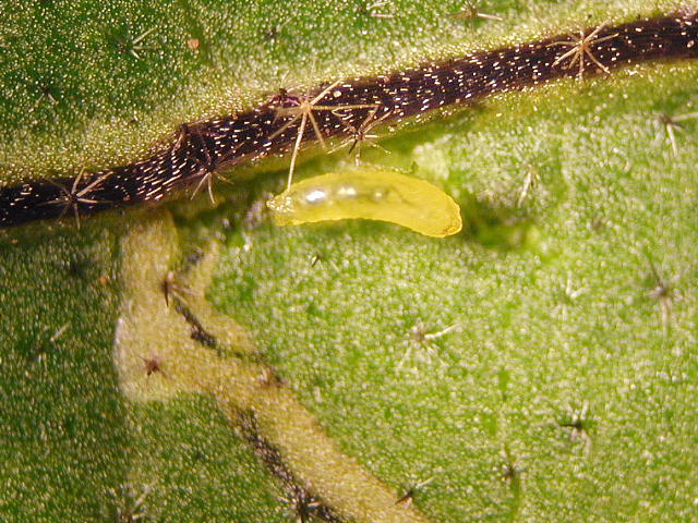 マメハモグリバエ幼虫(体長1.6mm)