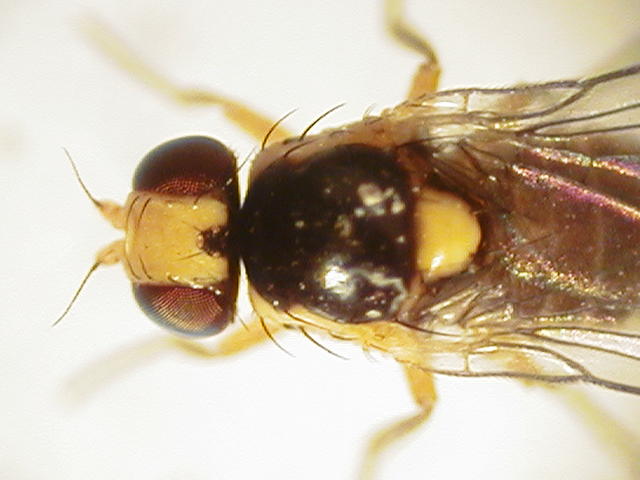 (比較)トマトハモグリバエ成虫頭部(複眼の後ろが茶褐色)
