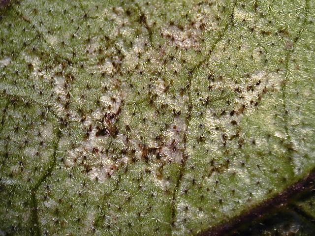ミカンキイロアザミウマ 被害葉拡大(葉裏)