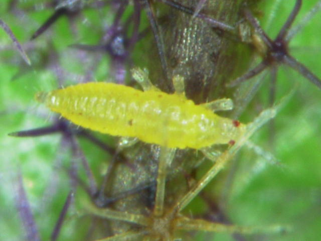 ミカンキイロアザミウマ1齢幼虫(体長0.5mm)