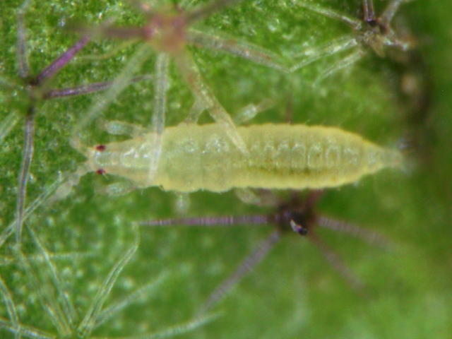 ミナミキイロアザミウマ1齢幼虫(体長0.6mm)
