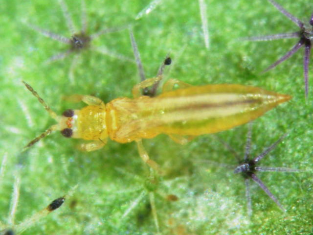 コメント:ミナミキイロアザミウマ成虫(体長1mm)