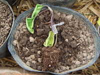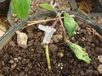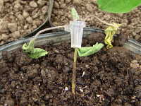 被害:苗の地際部がくびれて細くなり、萎れる。