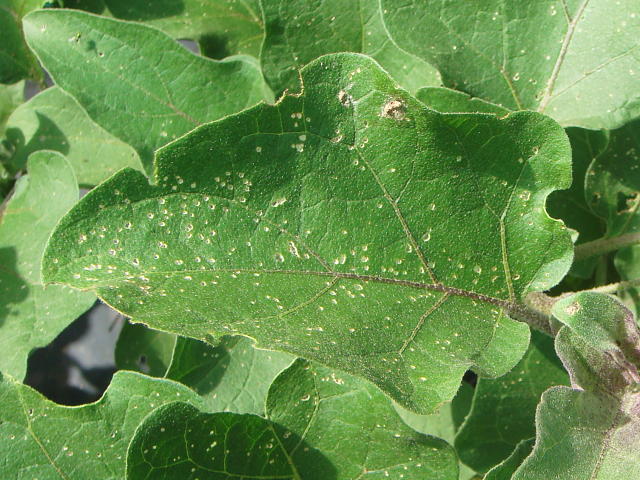 ナスナガスネトビハムシ 成虫が葉に小孔をあける
