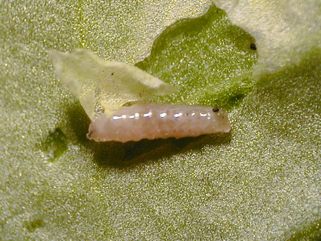 ナモグリバエ幼虫(体長3.5mm)