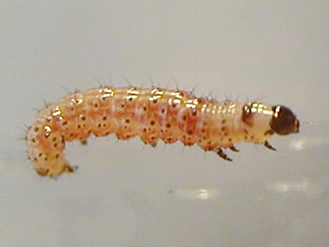 オオタバコガ若齢幼虫(体長4mm)