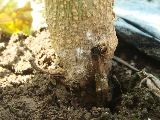 白絹病 地際部に白い菌糸が発生