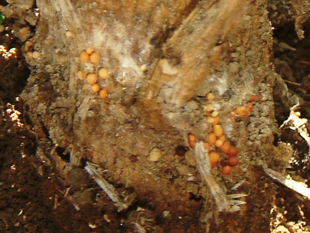 白絹病 茶褐色の菌核