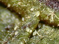 被害:加害によるさび果の発生、葉の変色、奇形、芯止まり