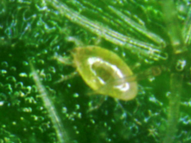 チャノホコリダニ幼虫(背中が窪んでいる)