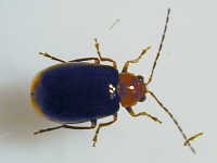 参考:ウリハムシモドキはマメ科植物を食草とするが、広食性でナスも食する。