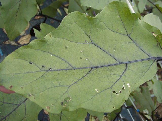 ウリハムシモドキ成虫による被害葉
