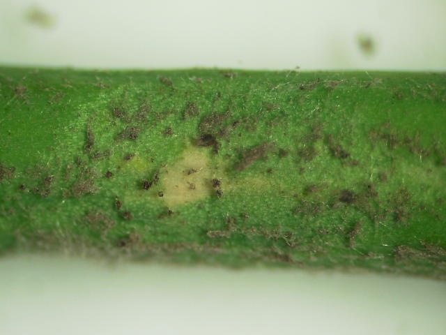 べと病 薄緑色の病斑(中心部は白褐色)