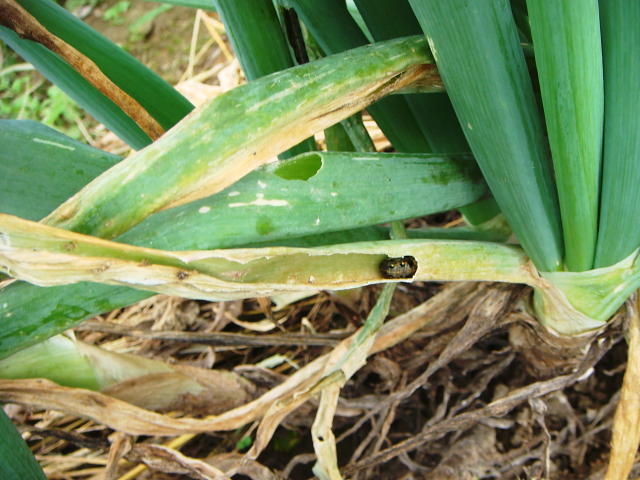 ハスモンヨトウ 中齢幼虫が侵入した葉身