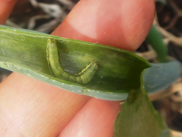 シロイチモジヨトウ老齢幼虫による食害葉
