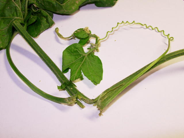 コメント:アズキノメイガ中齢幼虫による被害茎