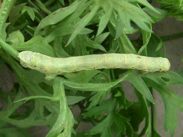 ヨモギエダシャク老齢幼虫 背面の1対の突起が特徴