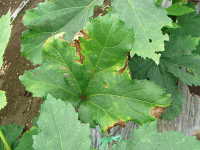 伝染方法:土壌中に残った発病葉上の病原菌が伝染源となる。