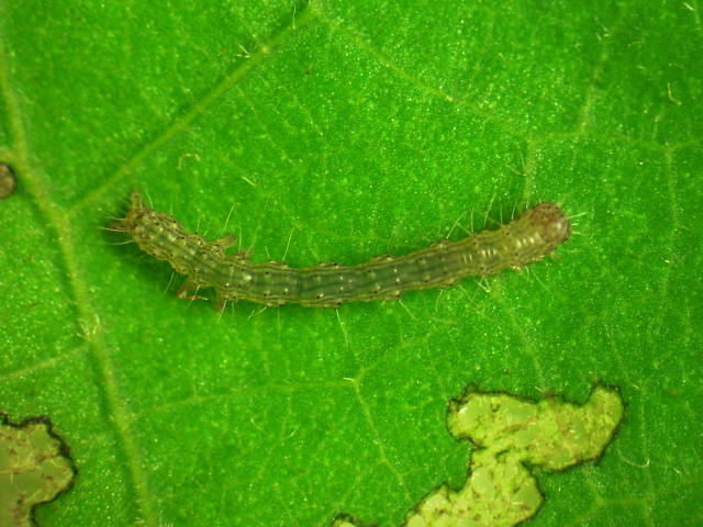 フタトガリコヤガ若齢幼虫(体長7mm)