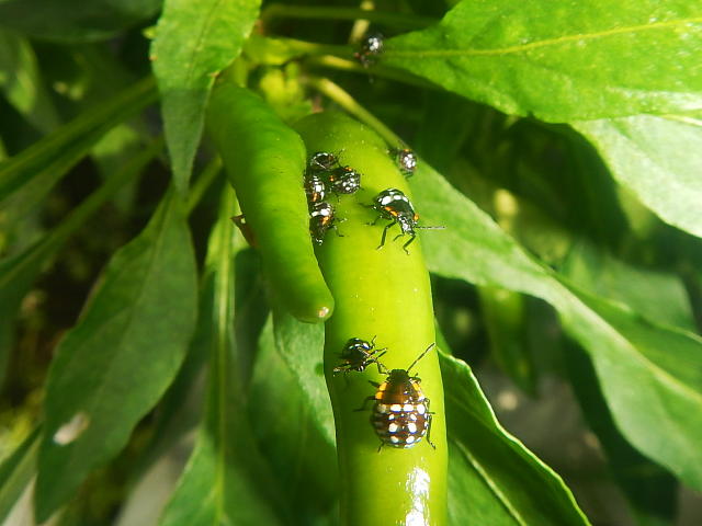 アオクサカメムシ3、4齢幼虫による果実の吸汁