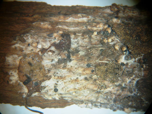 白絹病 株元の菌糸と菌核