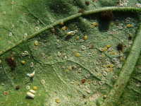 被害:幼虫及び成虫の葉からの吸汁による生育抑制。排せつ物によるすす病の発生。