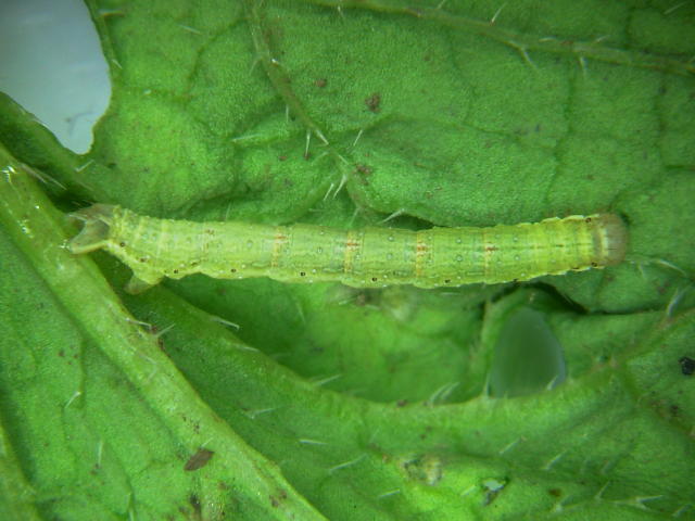 フトジマナミシャク老齢幼虫(体長14mm)